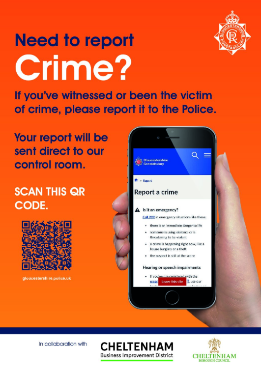 If you’ve witnessed or been affected by a crime that is not an emergency, please report it via the Gloucestershire Constabulary website, where it will be sent directly to the control room.